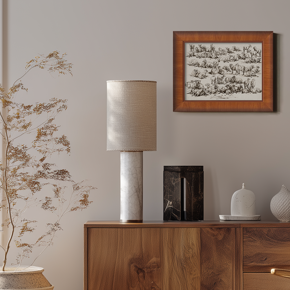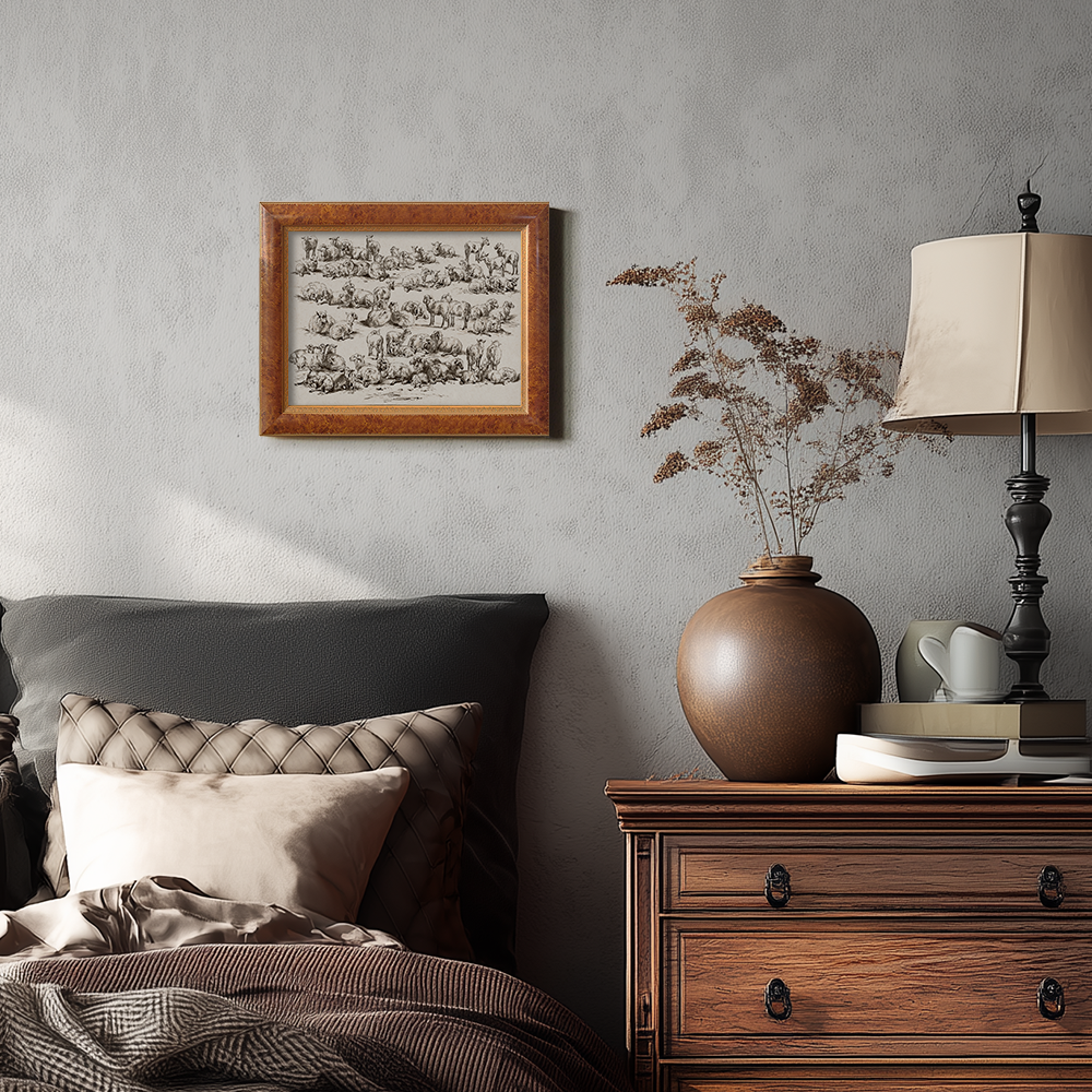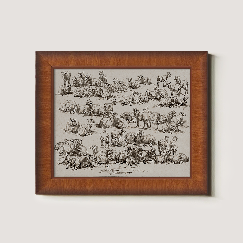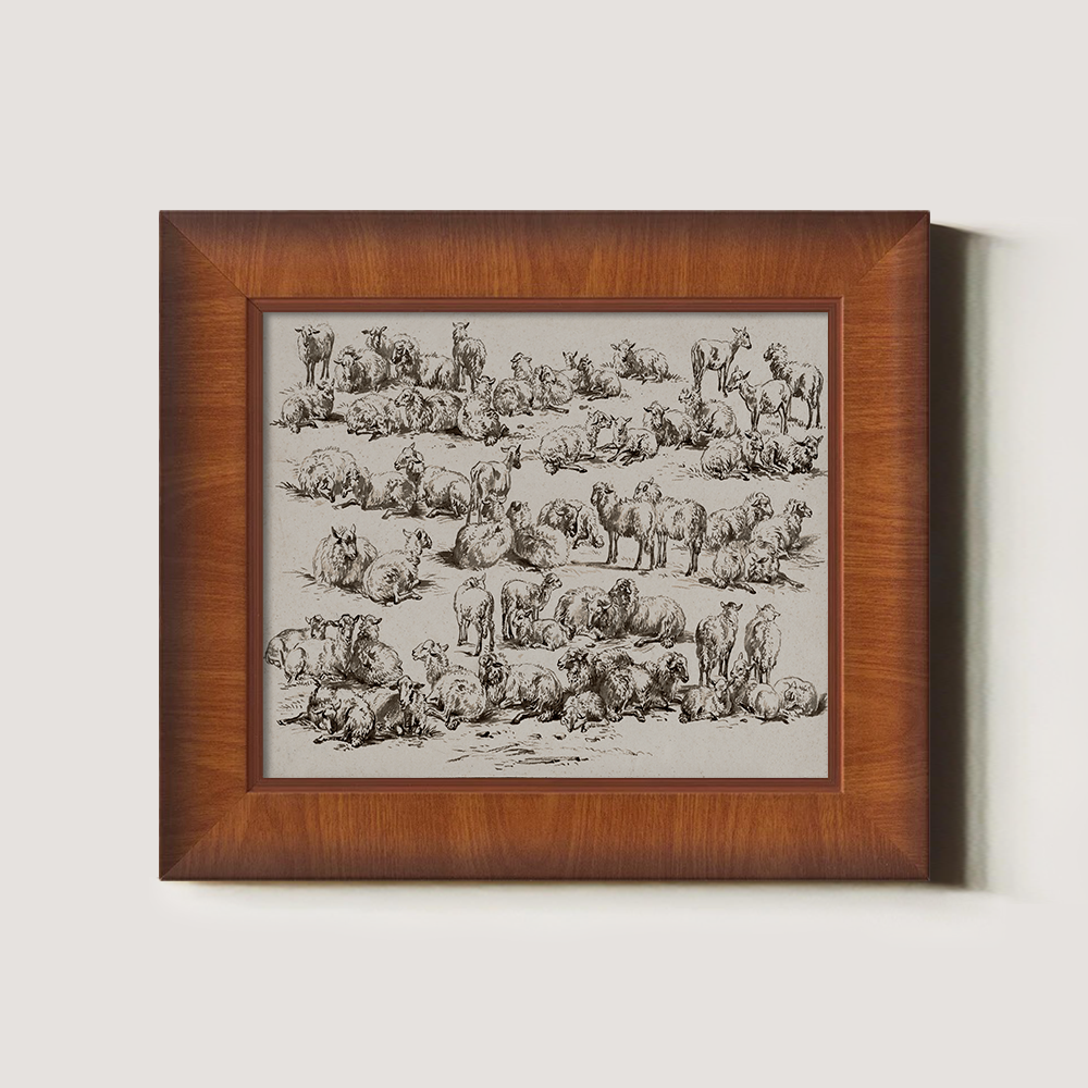 Whimsical Flock of Sheep Grazing in Sunlit Meadow Sketch